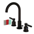 This faucet tastefully interweaves top-notch ergonomic design and the sheen of contemporary simplicity with its black silicone rubber coated Handles and cylindrical facets. Ideal for more spacious bathrooms, widespread faucets are more spread apart and feature a 3-hole installation. The Kaiser 8 in. widespread bathroom faucet with brass pop-up and its featured sturdy brass construction and premium oil rubbed bronze finish are guaranteed to glamorize your home's modern ensemble for years to come. Furnish your home surrounding with the modern flair of this fixture. A matching finish drain is also included.