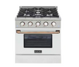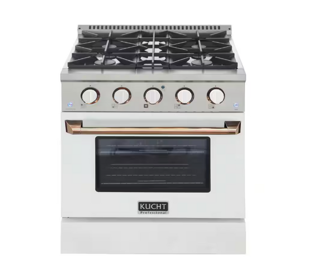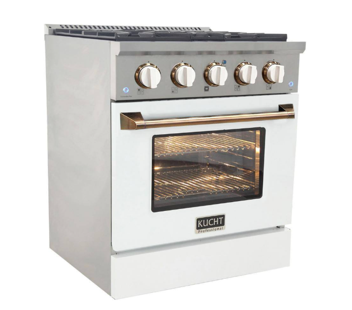 KUCHT Professional 30 in. 4.2 cu. ft. Dual Fuel Range for Natural Gas with Sealed Burners and Convection Oven in Stainless Steel with Gold Handle, Rings and Knobs.
