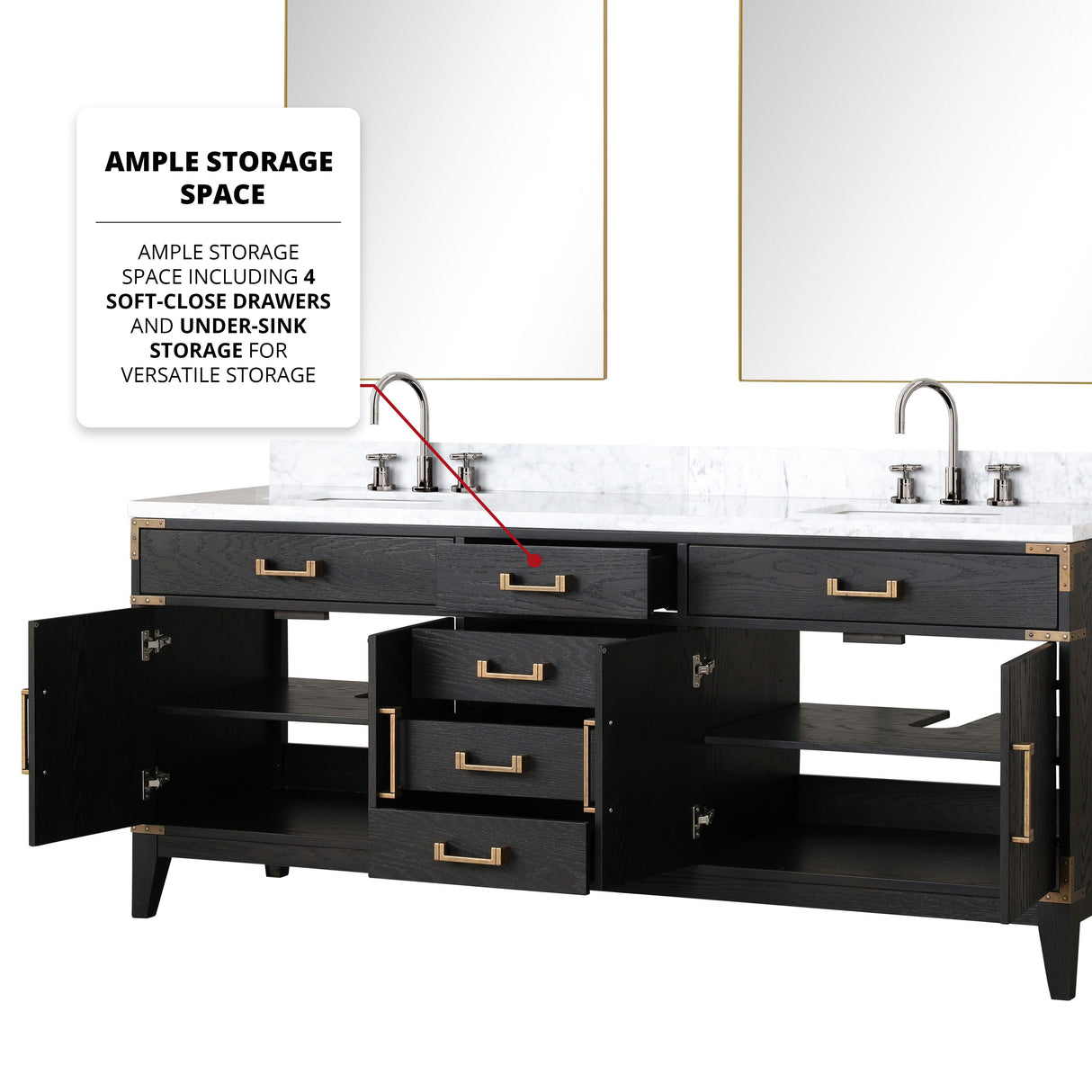 Laurel 80 in. Freestanding Bathroom Vanity with Carrara Marble Sink Top