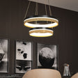 LED Pendant Light Fixture, Double Ring, Round, Dimmable, 3000K (Warm White), Wood and Matte Black (P1222-64)