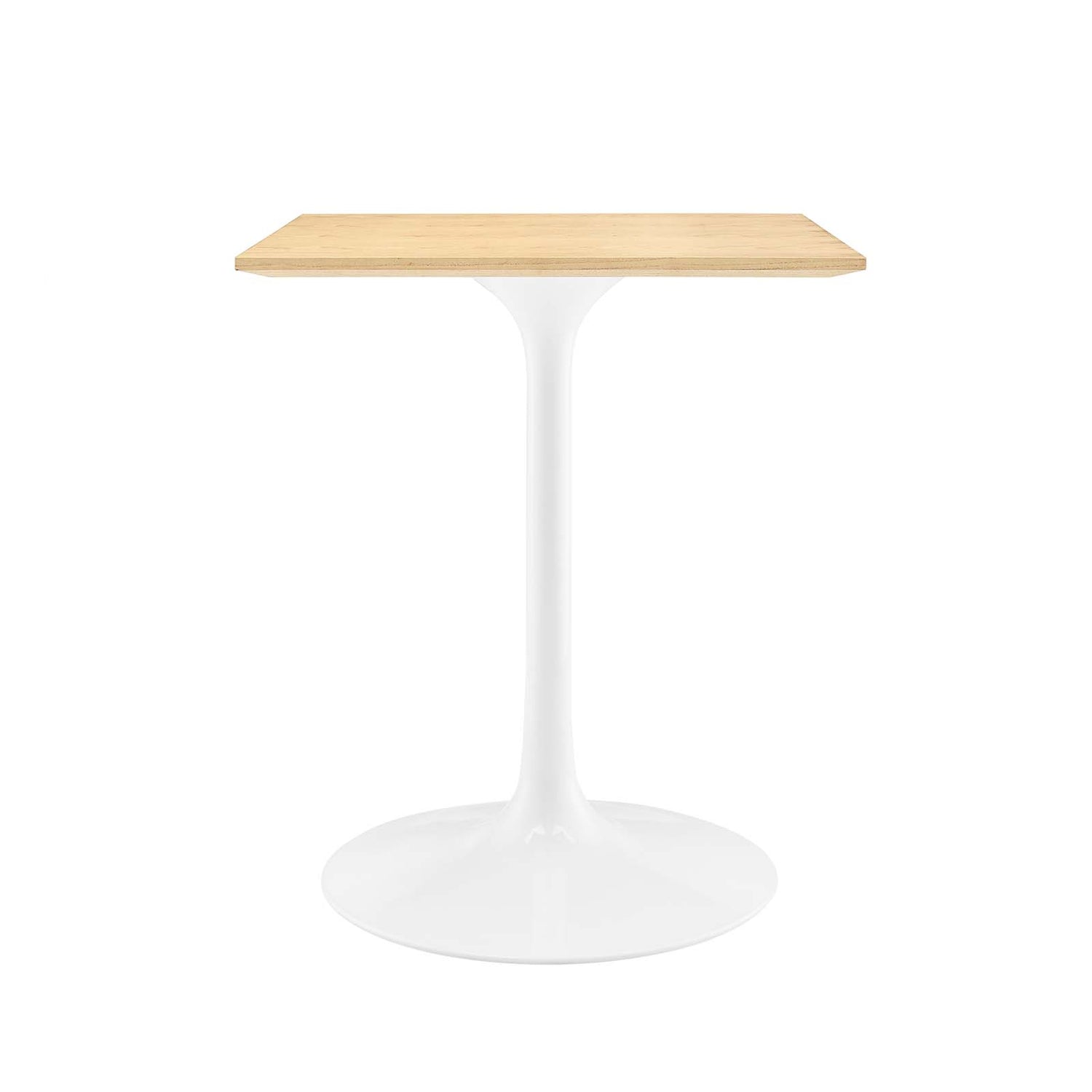 Embrace the day-to-day with the Lippa 24" Square Wood Grain Table, perfect for everyday dining. Featuring an MDF table top and wood grain veneer with a beveled edge, this dining table comfortably seats two. Resting on a tapered, white metal pedestal base and coated in a chip-resistant finish, its sleek silhouette complements kitchens, living spaces, hallways, offices, sunrooms, or bedrooms. Includes non-marking felt pad to protect flooring. Assembly Required.