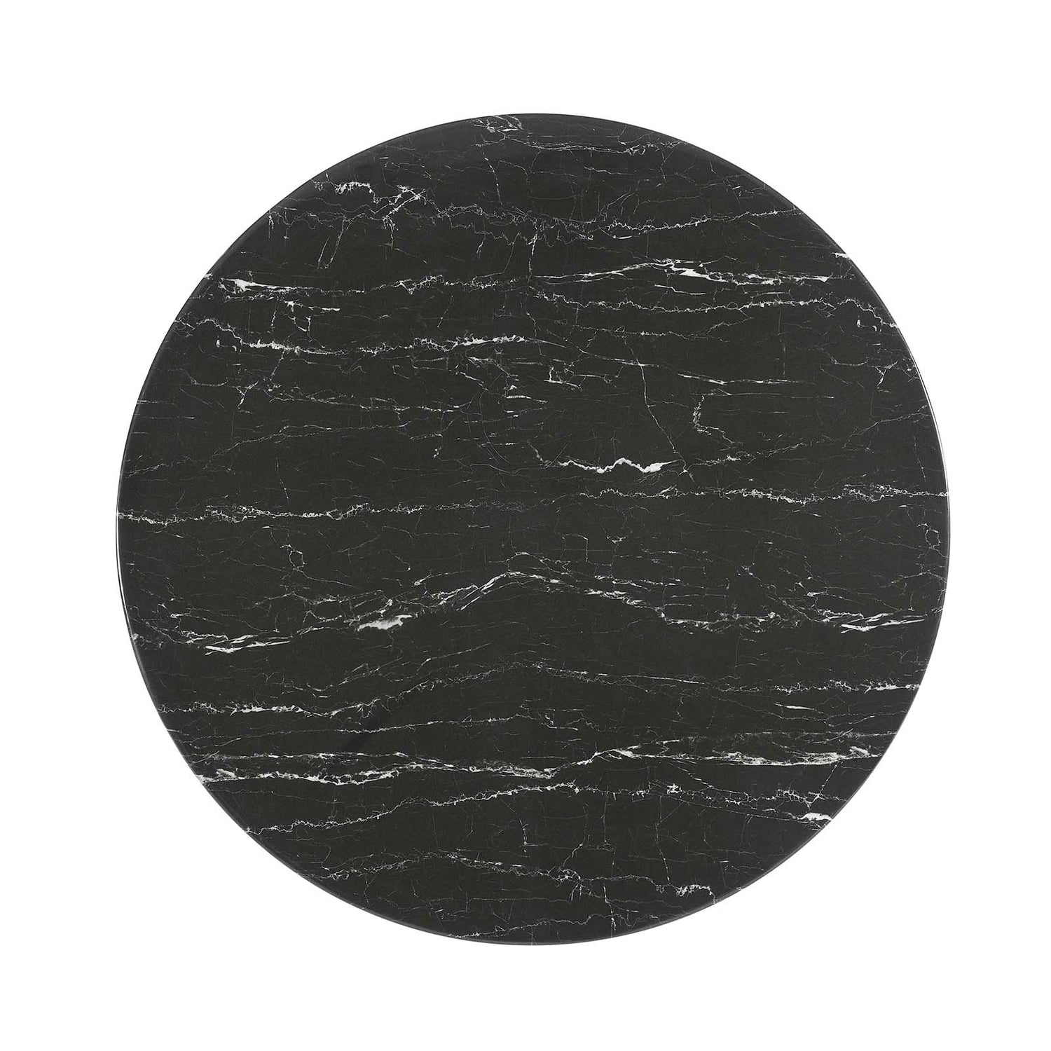Let modern inspiration flow while gathered around the Lippa 40" Round Artificial Marble Dining Table. Perfect for entertaining family and friends or everyday dining, this pedestal table comfortably seats two. Its round tabletop is crafted with artificial marble and beveled edge for a contemporary yet timeless design. Embodying an iconic mid-century silhouette, this pedestal dining table floats on a sleek tapered metal pedestal base with a chip-resistant powder-coated finish. Includes non-marking felt pad to protect flooring. Assembly required.