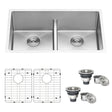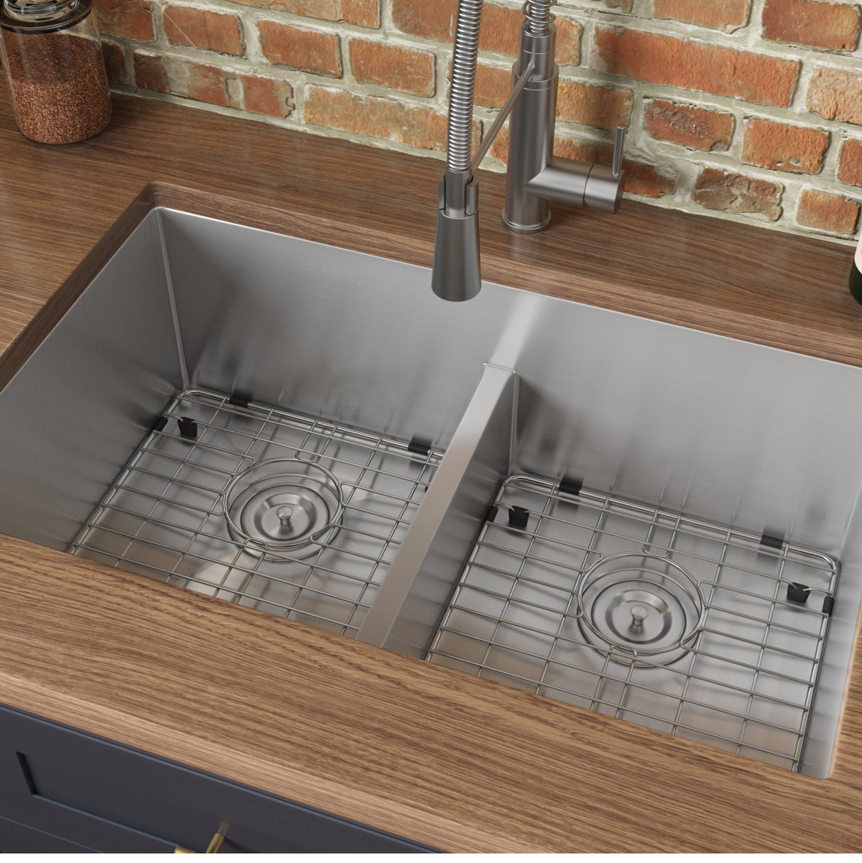 Low-Divide Undermount Tight Radius 50/50 Double Bowl 16 Gauge Stainless Steel Kitchen Sink