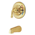 The timeless appeal of this tub and shower faucet's sleek and simple design transforms any bathroom into a destination location. Complete with an easy-to-turn lever Handle, an optimum bathing experience awaits. Enjoy the sturdy brass construction and premium polished brass finish for a fixture that will last for years to come. A pressure balanced valve is included for safety and protection against accidental burns.