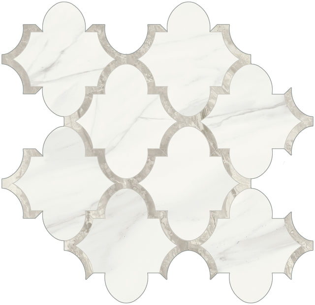 Mayfair High Gloss Volakas Grigio Arabesque Polished Glazed Porcelain Mosaic - Piece is backordered and will ship as soon as it is back in stock.