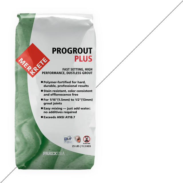 This Bright White colored ProGrout Plus Sanded Grout is a cement-based polymer-modified grout that creates firm, compact joints that resist shrinking, breaking, and erosion. ProGrout Plus Sanded Grout is a durable interior or exterior grout that can support 1/8 in. to 1/2 in. (313 mm) joints. It can be used on floors, countertops, walls, ceilings, showers, fountains, and pools, among other things.