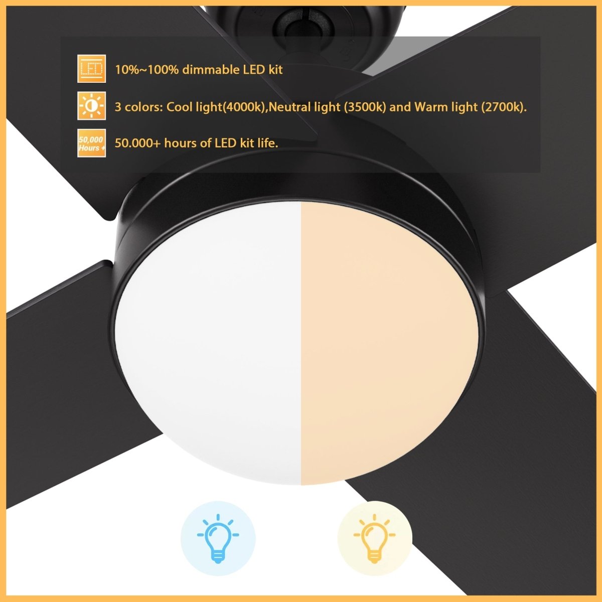 - Includes integrated LED light kit with warm light and cool light, it offers lower energy consumption and a longer life span.