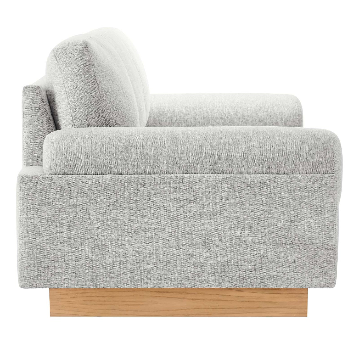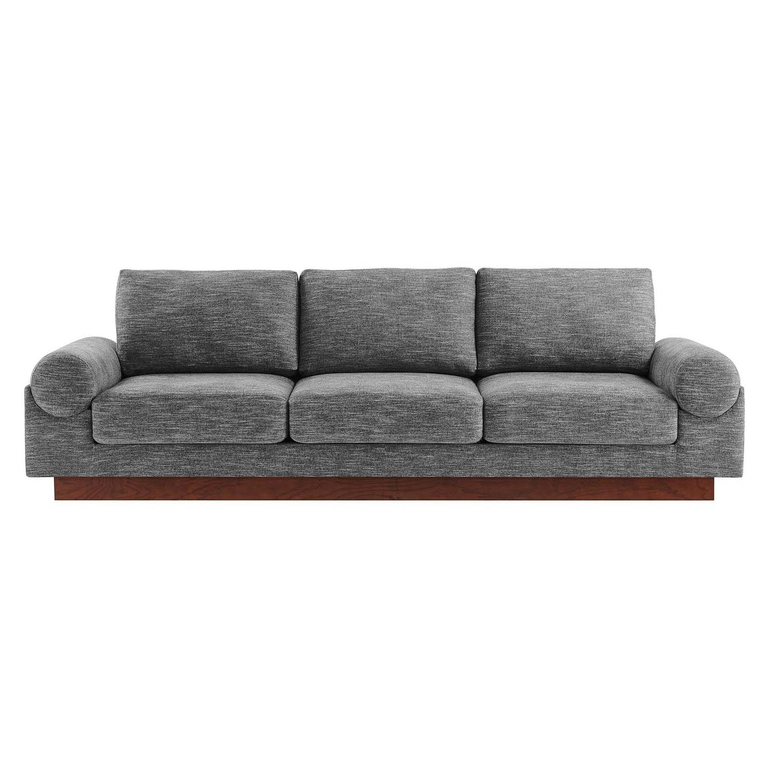 Experience contemporary luxury with the Oasis Fabric Upholstered Sofa bringing modern design and a streamlined silhouette to your living room, lounge area, or office. Featuring a deep, cozy seat, this comfortable couch offers unparalleled relaxation with armrests that resemble oversized bolster pillows. The dense foam padded cushions with pocket springs provide premium support, while the sinuous spring support system ensures lasting durability. Covered in stain-resistant polyester fabric, this upholstered sofa exudes elegance while resting on a sturdy wood veneer plinth base. Assembly is a breeze, allowing you to effortlessly bring this luxurious piece into your home. Elevate your living space with this modern sofa that combines comfort, style, and convenience. Weight Capacity: 600 lbs.