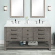 Orkney 61 In. Freestanding Solid Wood Bathroom Vanity with Carrara White Engineered Stone Sink Top with 4 In. Backsplash in Smoked Wood Finish