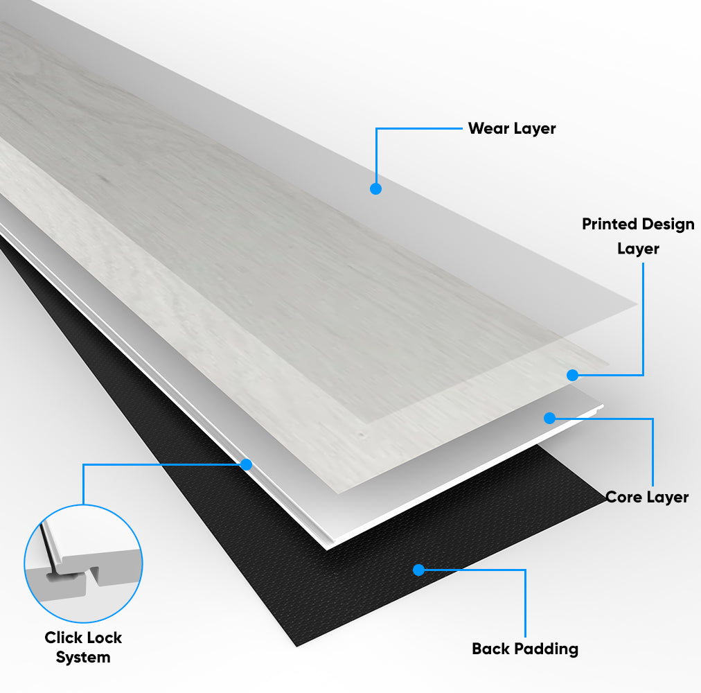 Material - Made with rigid Stone Plastic Composite (SPC) material that will not break through wear and tear.