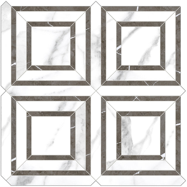 Piazza Mayfair Statuario Polished Glazed Porcelain Mosaic