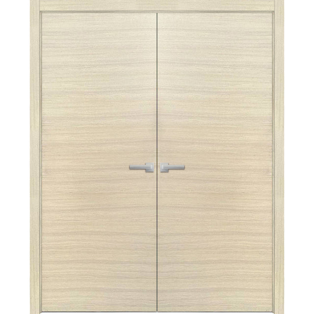 Planum Solid French Double Doors | Planum 0010 Natural Veneer | Wood Solid Panel Frame Trims | Closet Bedroom Sturdy Doors