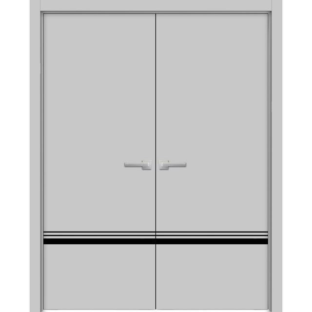Planum Solid French Double Doors | Planum 0012 Matte Grey | Wood Solid Panel Frame Trims | Closet Bedroom Sturdy Doors