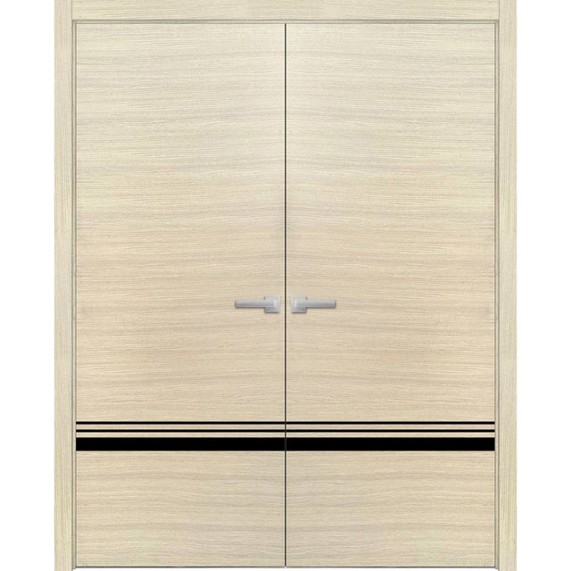 Planum Solid French Double Doors | Planum 0012 Natural Veneer | Wood Solid Panel Frame Trims | Closet Bedroom Sturdy Doors