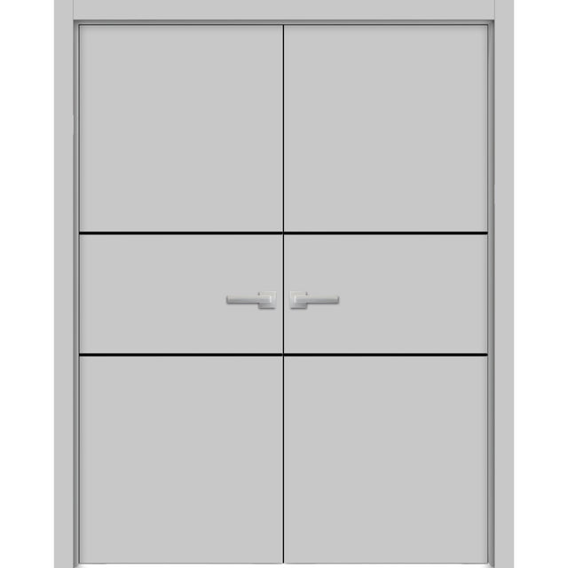Planum Solid French Double Doors | Planum 0014 Matte Grey | Wood Solid Panel Frame Trims | Closet Bedroom Sturdy Doors