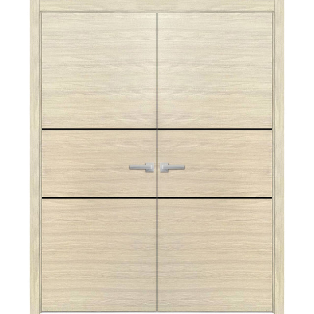 Planum Solid French Double Doors | Planum 0014 Natural Veneer | Wood Solid Panel Frame Trims | Closet Bedroom Sturdy Doors