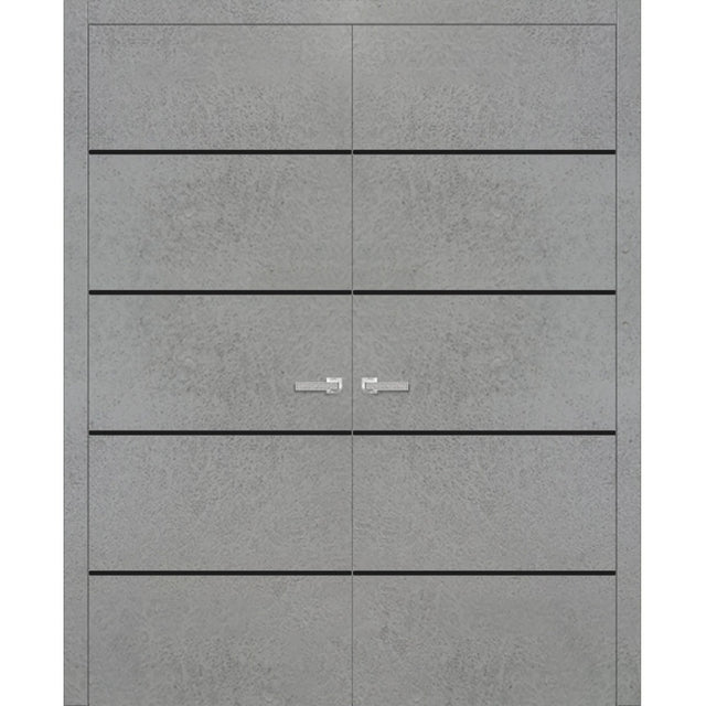 Planum Solid French Double Doors | Planum 0015 Concrete | Wood Solid Panel Frame Trims | Closet Bedroom Sturdy Doors