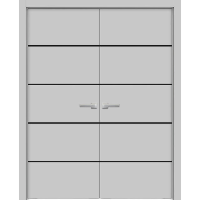 Planum Solid French Double Doors | Planum 0015 Matte Grey | Wood Solid Panel Frame Trims | Closet Bedroom Sturdy Doors