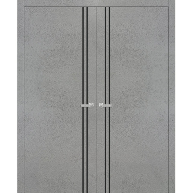 Planum Solid French Double Doors | Planum 0016 Concrete | Wood Solid Panel Frame Trims | Closet Bedroom Sturdy Doors