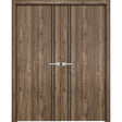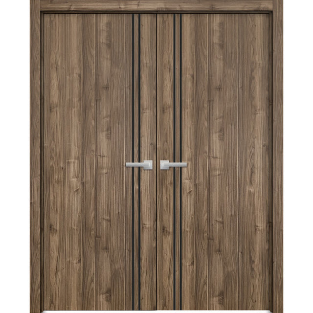 Planum Solid French Double Doors | Planum 0016 Walnut | Wood Solid Panel Frame Trims | Closet Bedroom Sturdy Doors