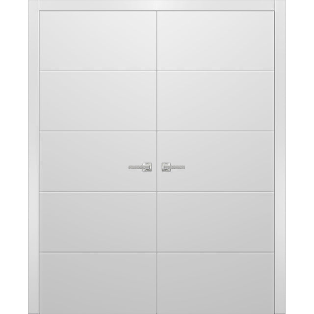 Planum Solid French Double Doors | Planum 0770 Painted White Matte | Wood Solid Panel Frame Trims | Closet Bedroom Sturdy Doors