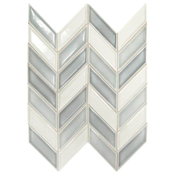 Premier Accents Ice Blue Chevron 9" x 12" 8mm Porcelain Mosaic Wall Tile