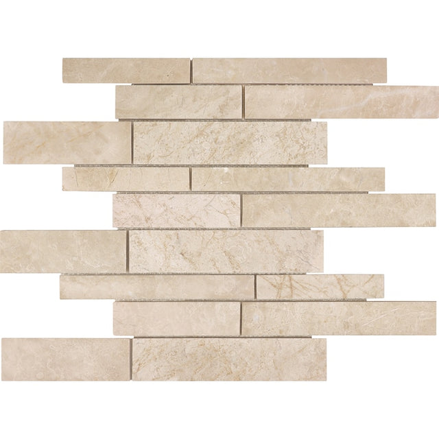Random Strip Allure Crema Honed Marble Mosaic - Case is backordered and will ship as soon as it is back in stock.