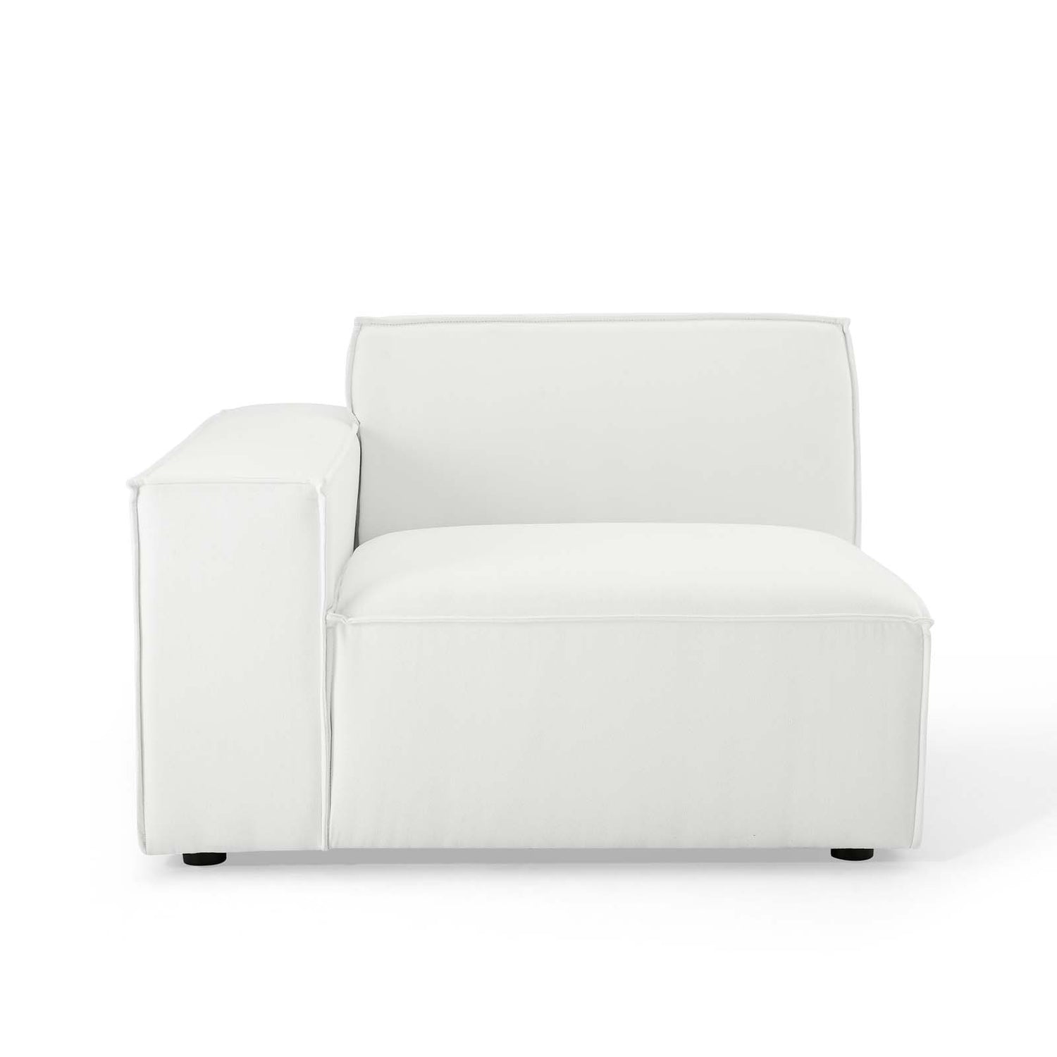 Create your custom living room and lounge area with the Restore Upholstered Fabric Left-Arm Sectional Sofa Chair. The Restore Left-Arm Chair appeals to minimalist elegance with a crisp design and broad lines accented with French piping details and polyester fabric upholstery. Dense foam padding and a pocket coil spring system in the cushions offer a luxe seating experience for your living room and lounge. The Restore Living Room Sofa Chair is solidly constructed from plywood and wood with non-marking foot caps to protect flooring and connectors between modular pieces. Chair Weight Capacity: 440 lbs.