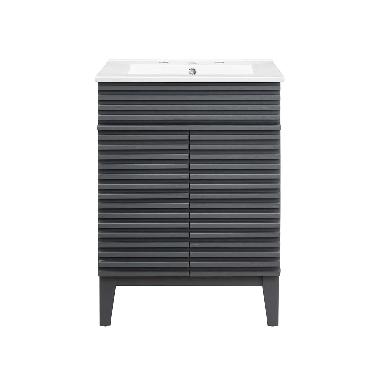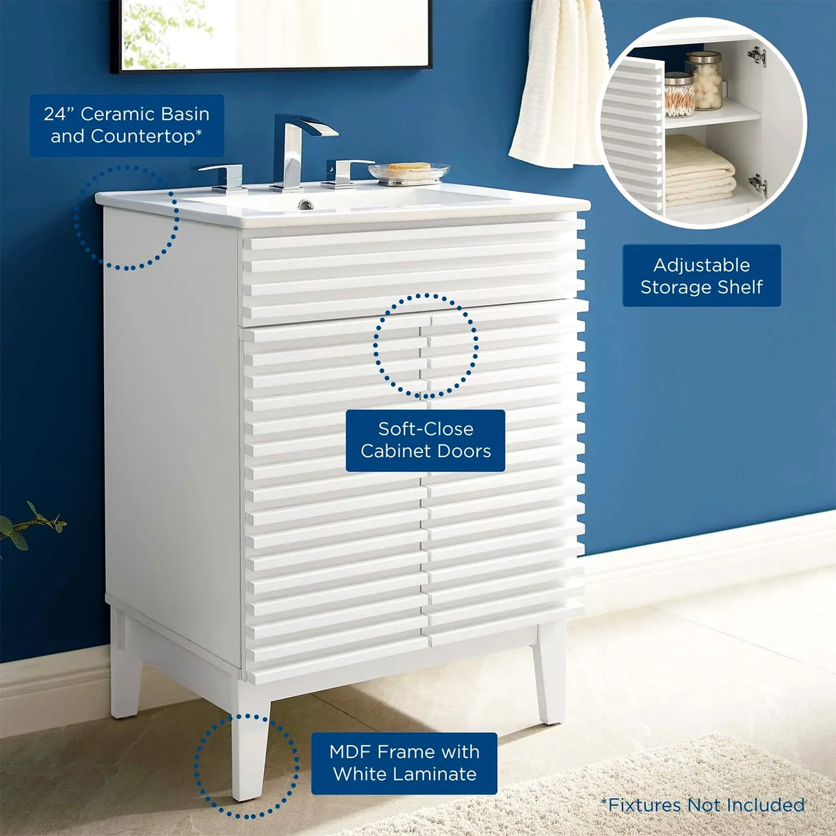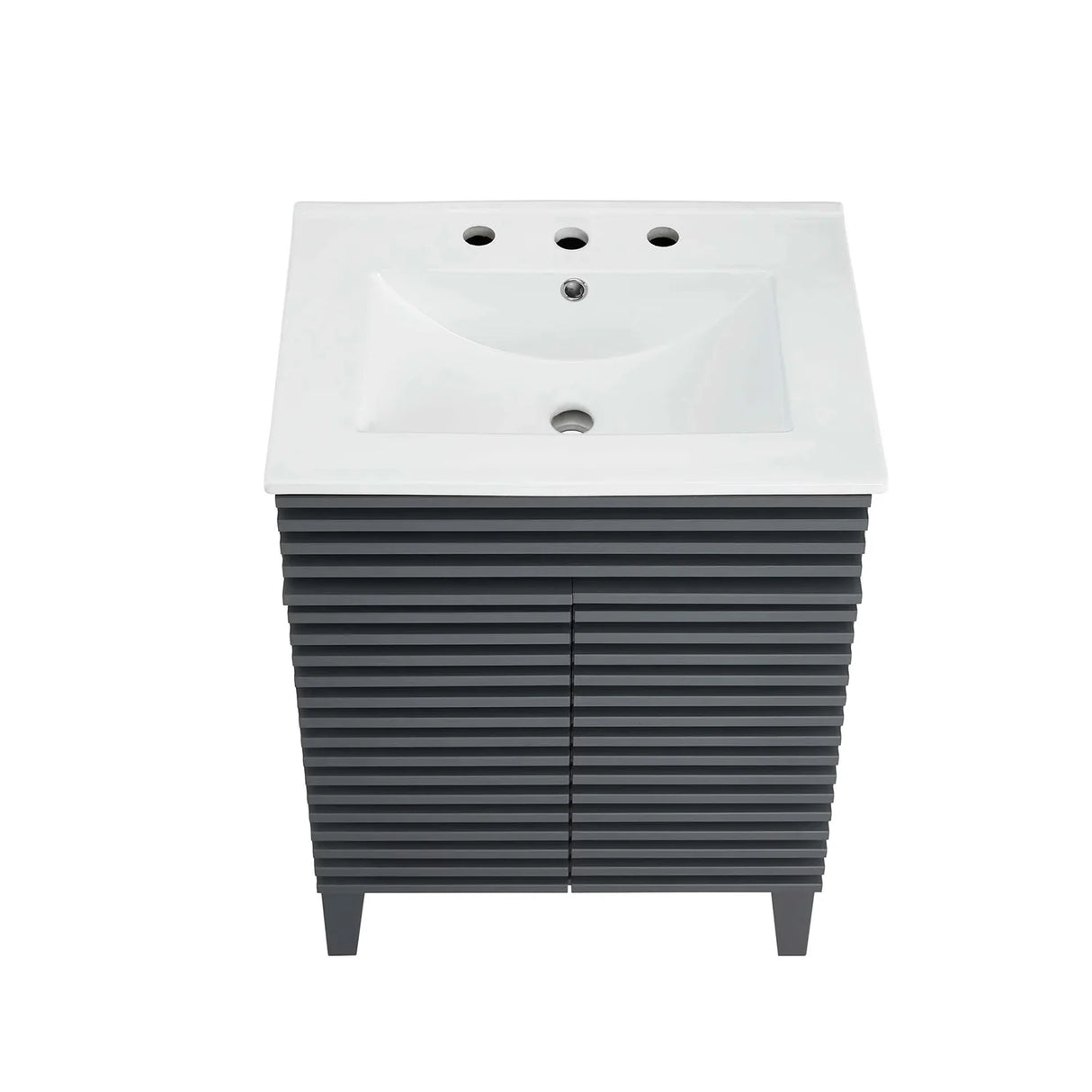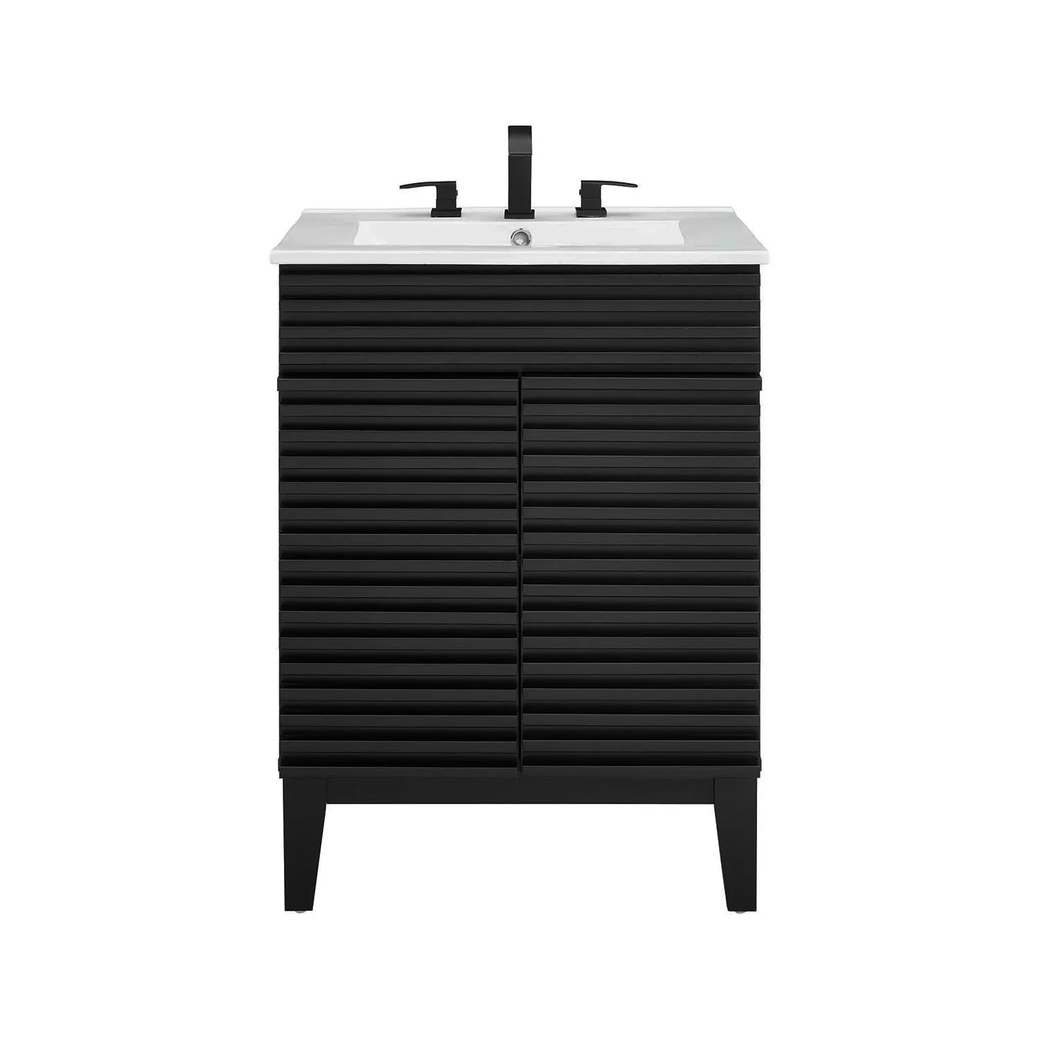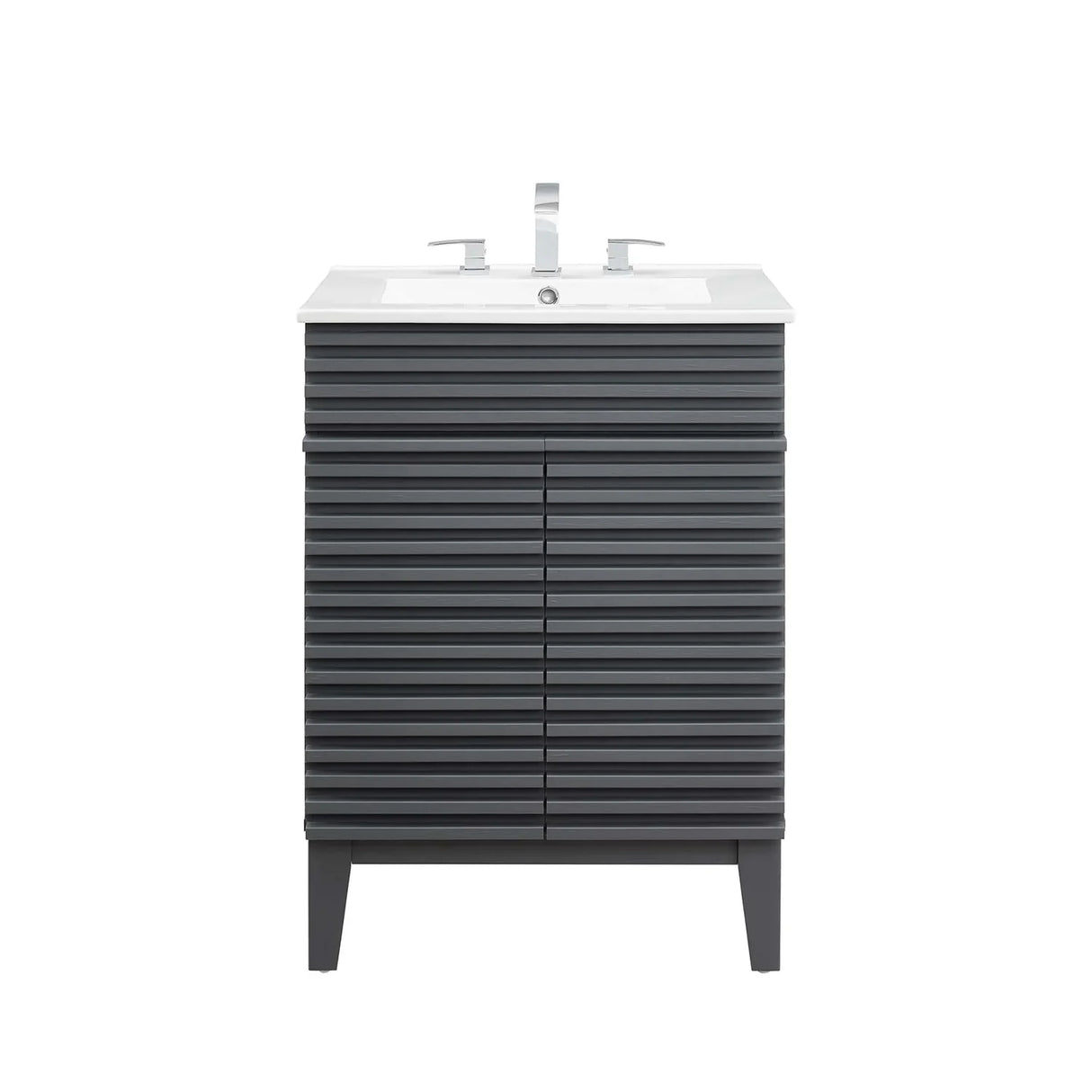 Upgrade your bathroom with the Rosie Freestanding 24 In. Bathroom Vanity. Featuring an integrated ceramic sink top, two doors, and adjustable storage shelves, this vanity seamlessly combines style and functionality. Its compact design is perfect for smaller spaces while providing ample storage for your essentials. The sleek and modern look, paired with practical storage solutions, makes it an ideal addition to any bathroom, enhancing both aesthetics and organization.