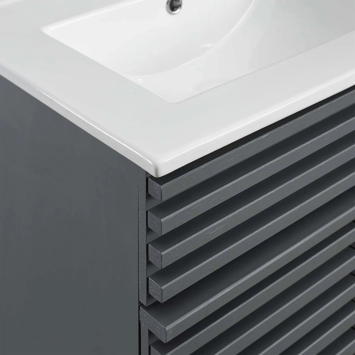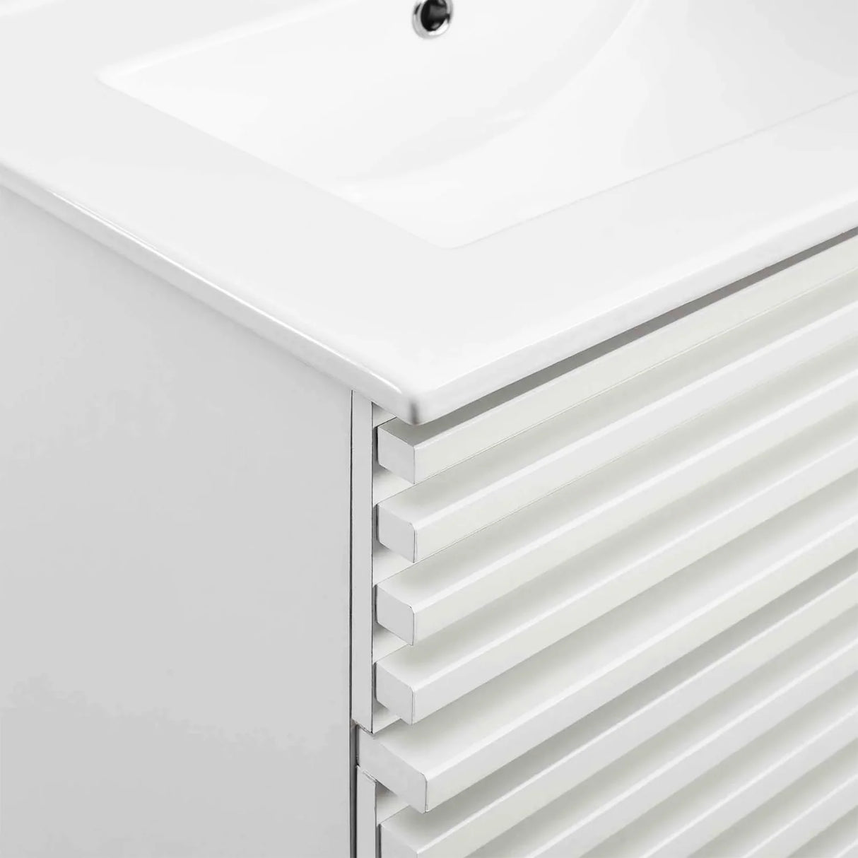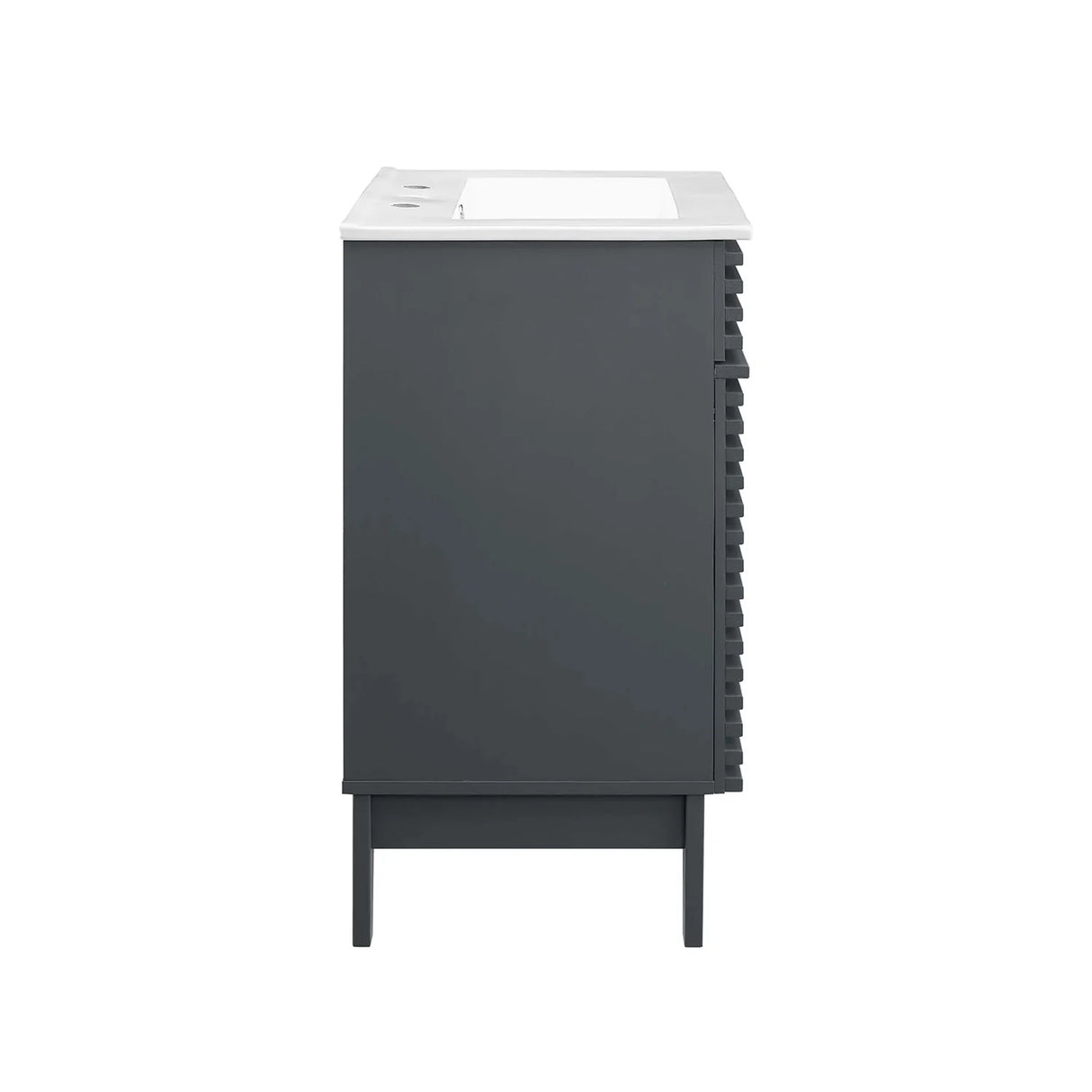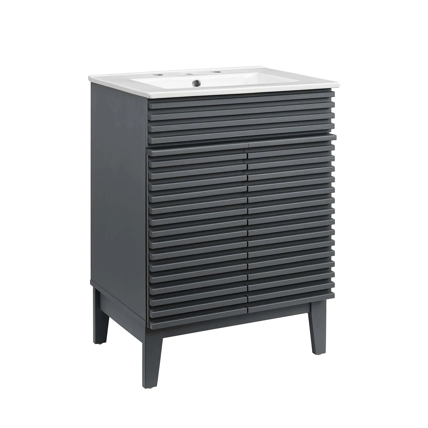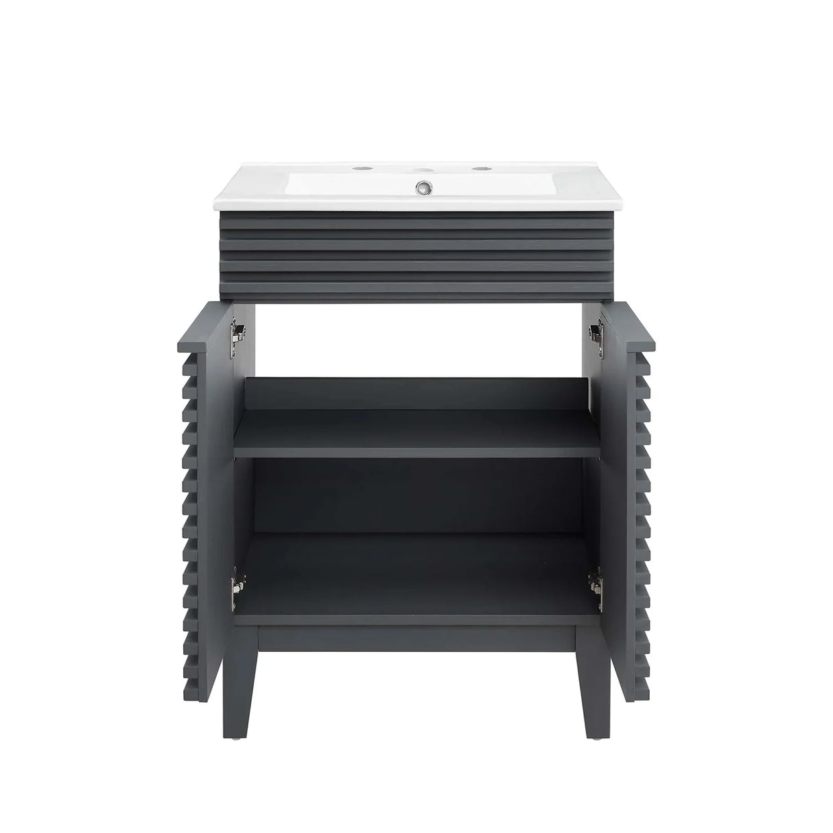 Upgrade your bathroom with the Rosie Freestanding 24 In. Bathroom Vanity. Featuring an integrated ceramic sink top, two doors, and adjustable storage shelves, this vanity seamlessly combines style and functionality. Its compact design is perfect for smaller spaces while providing ample storage for your essentials. The sleek and modern look, paired with practical storage solutions, makes it an ideal addition to any bathroom, enhancing both aesthetics and organization.