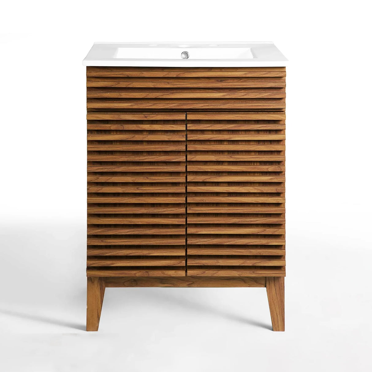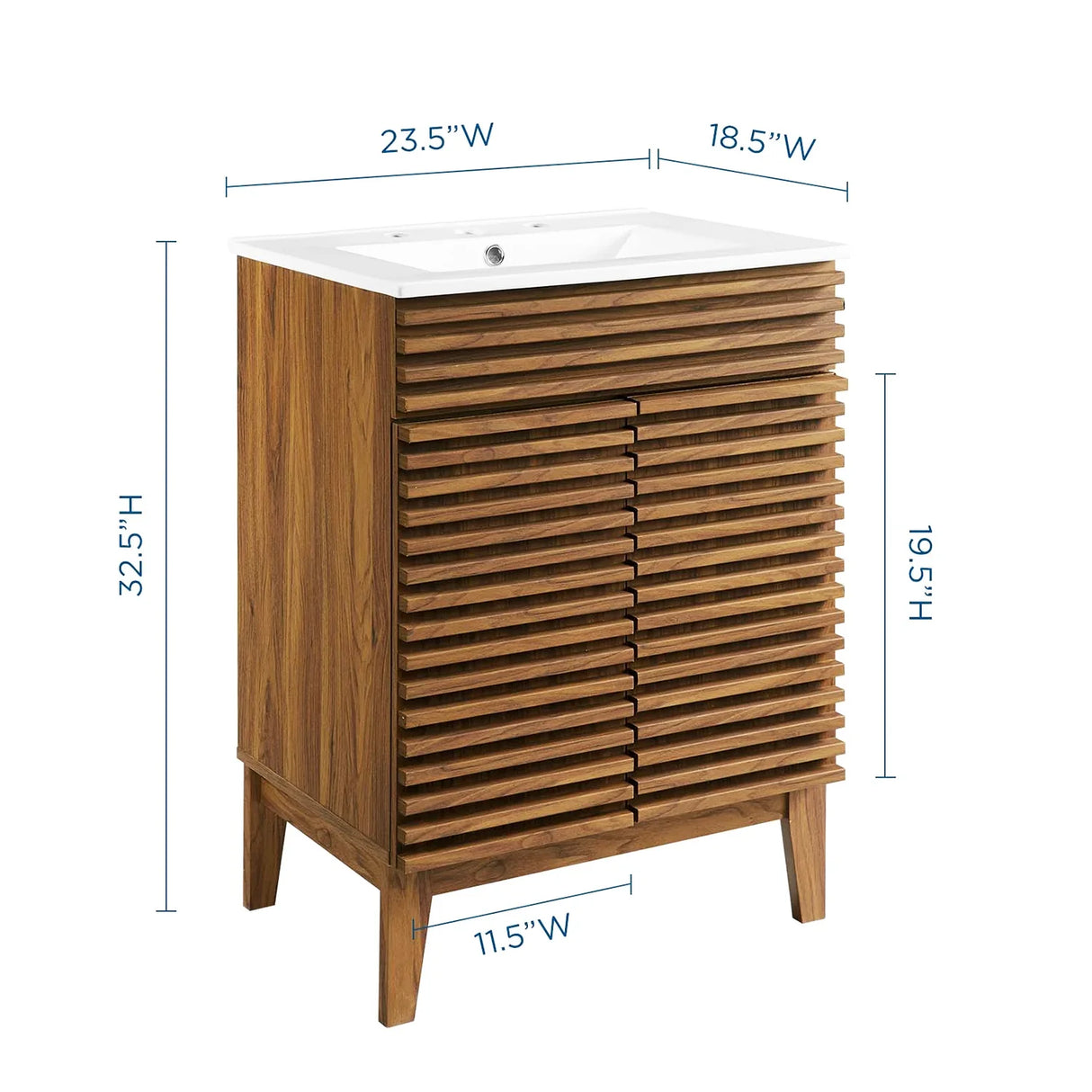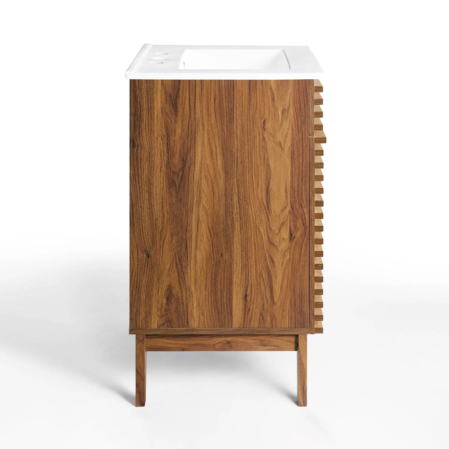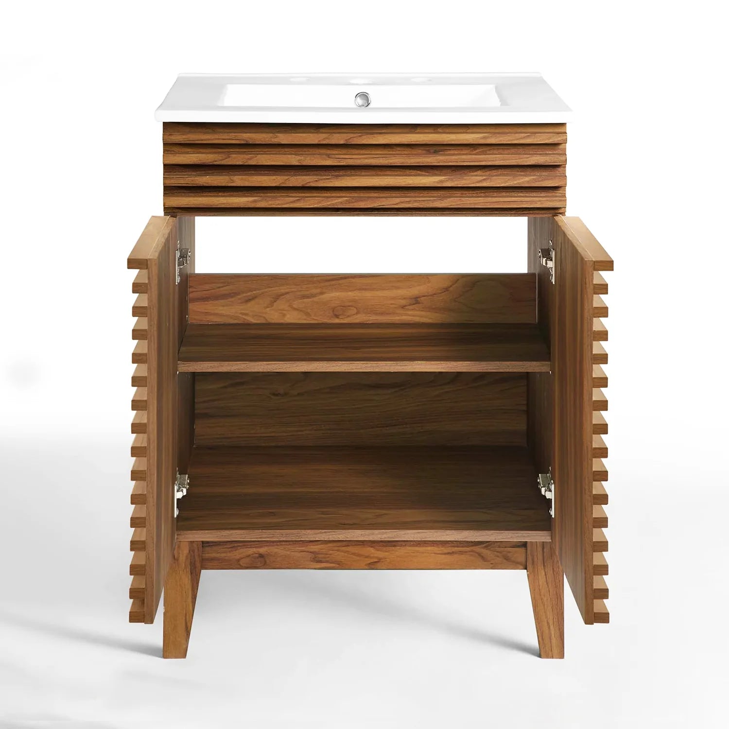 Rosie Freestanding 24 In. Bathroom Vanity With Integrated Ceramic Sink Top, 2 Doors & Adjustable Storage Shelves - Walnut White is backordered and will ship as soon as it is back in stock.