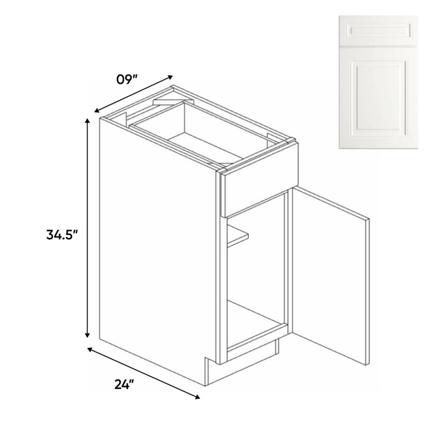 Atlas Blanco - 9 Inch Full Height Single Door Base Cabinet - 09" Width x 34.5" Height x 24" Depth
