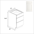 Atlas Blanco - 21 Inch Three Drawer Base Cabinet - 21" Width x 34.5" Height x 24" Depth