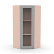 Liberty Shaker Ashen - 24 Inch Diagonal Corner Glass Door Wall Cabinet - 24" Width x 36" Height x 12" Depth