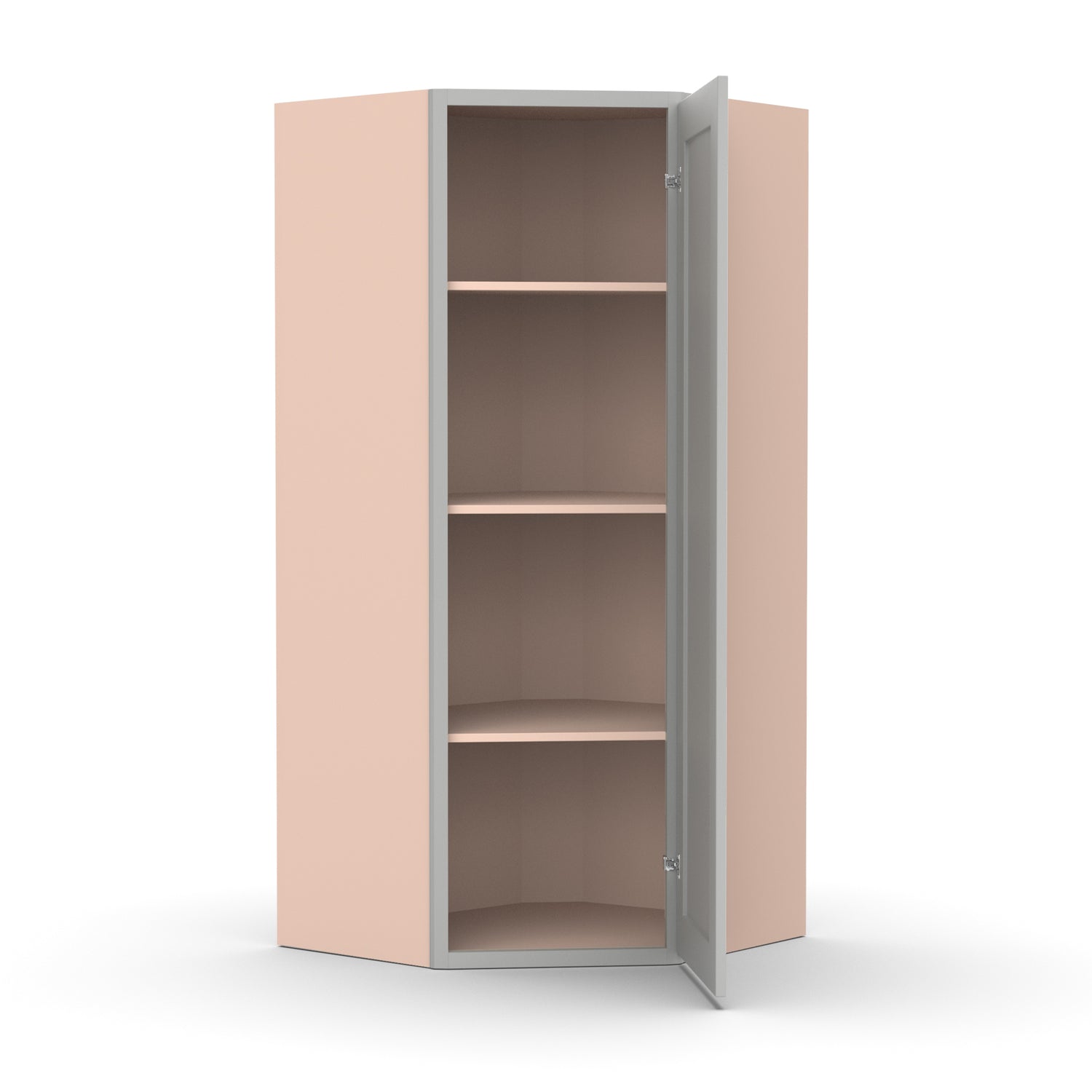 Liberty Shaker Ashen - 27 Inch Diagonal Corner Wall Cabinet - 27" Width x 42" Height x 15" Depth