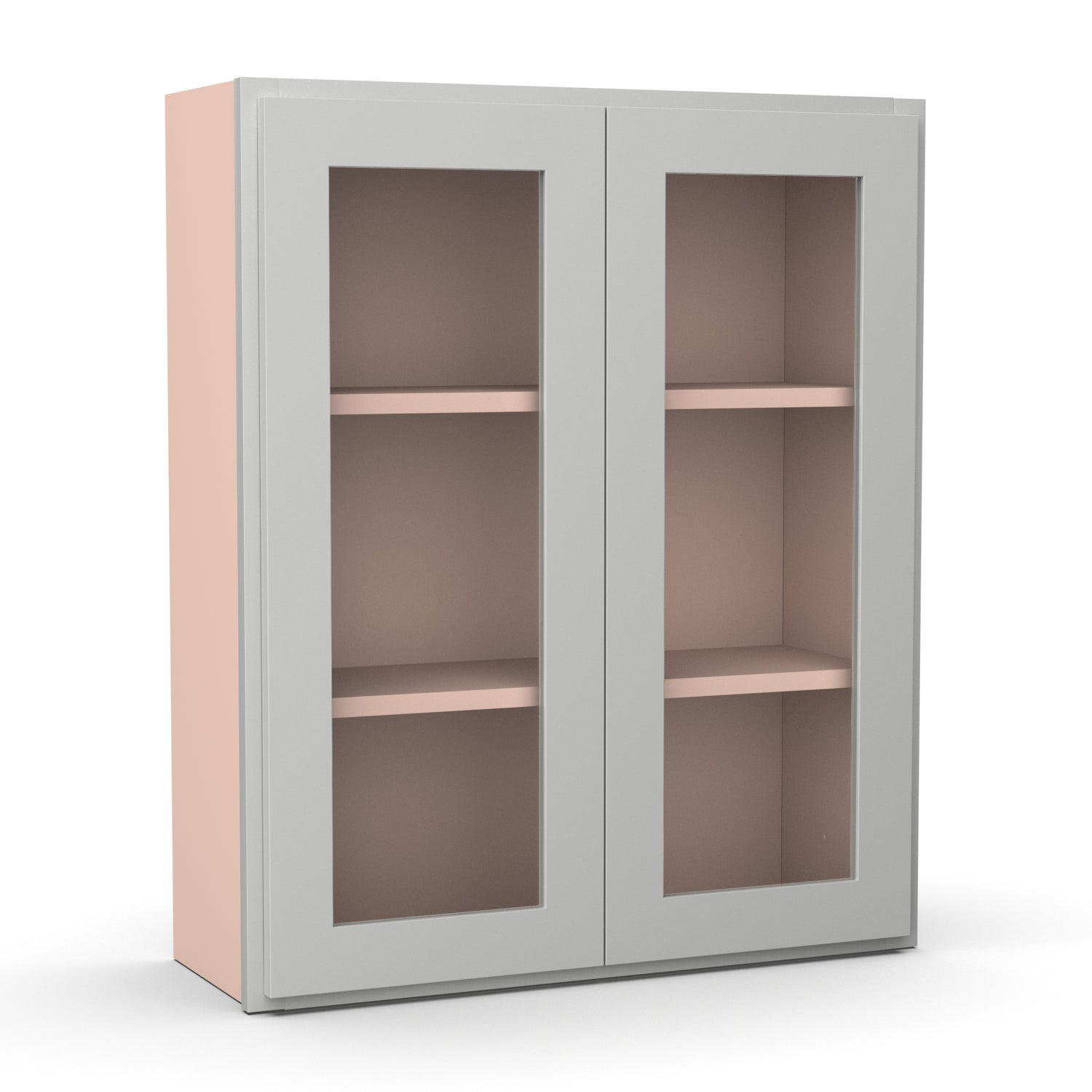 Liberty Shaker Ashen - 30 Inch Double Glass Door Wall Cabinet - 30" Width x 36" Height x 12" Depth