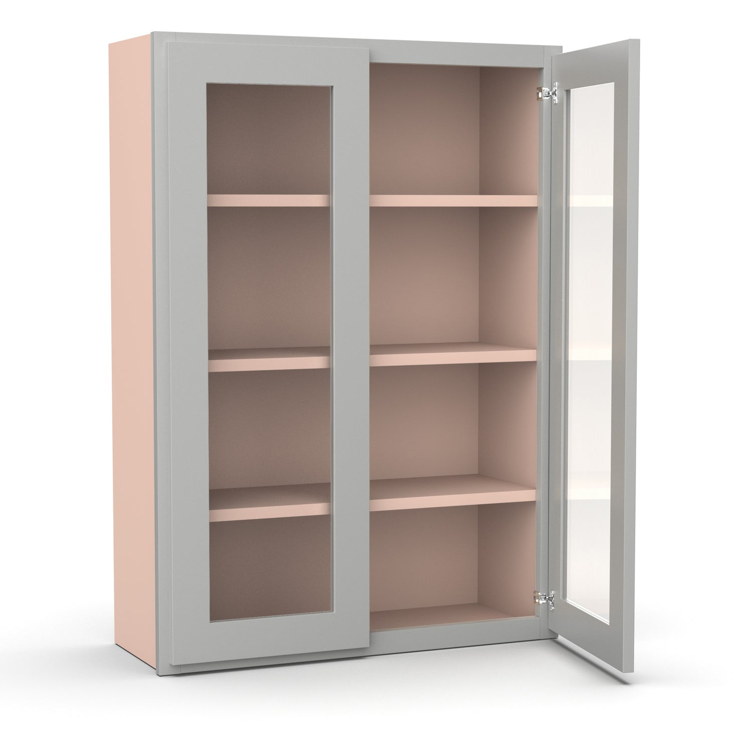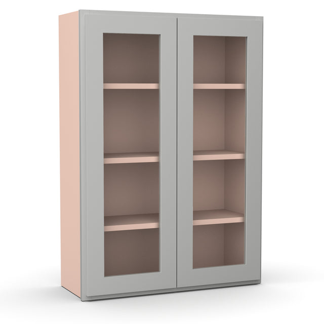 Liberty Shaker Ashen - 30 Inch Double Glass Door Wall Cabinet - 30" Width x 42" Height x 12" Depth