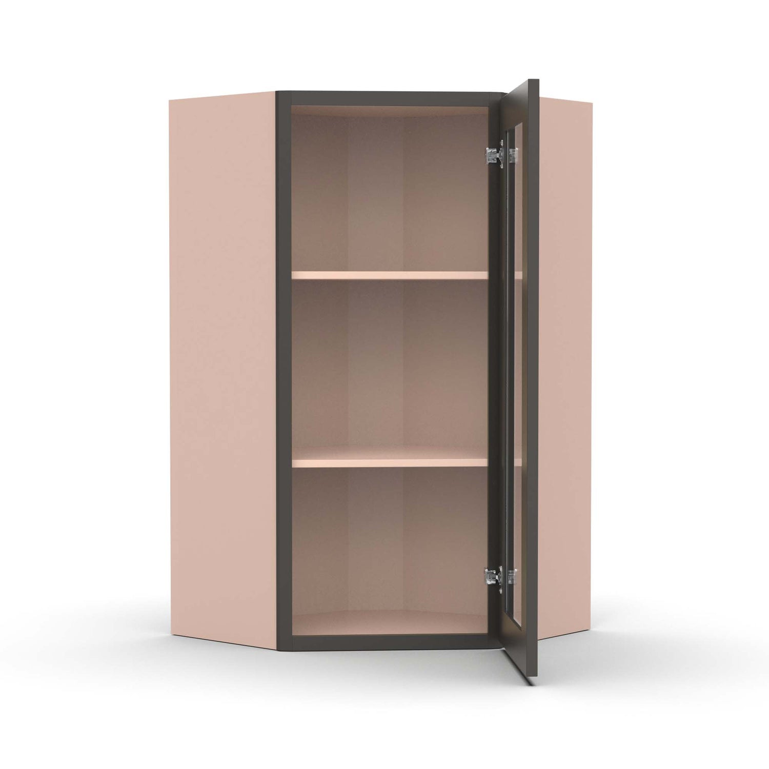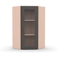 Liberty Shaker Grey - 24 Inch Diagonal Corner Glass Door Wall Cabinet - 24" Width x 30" Height x 12" Depth