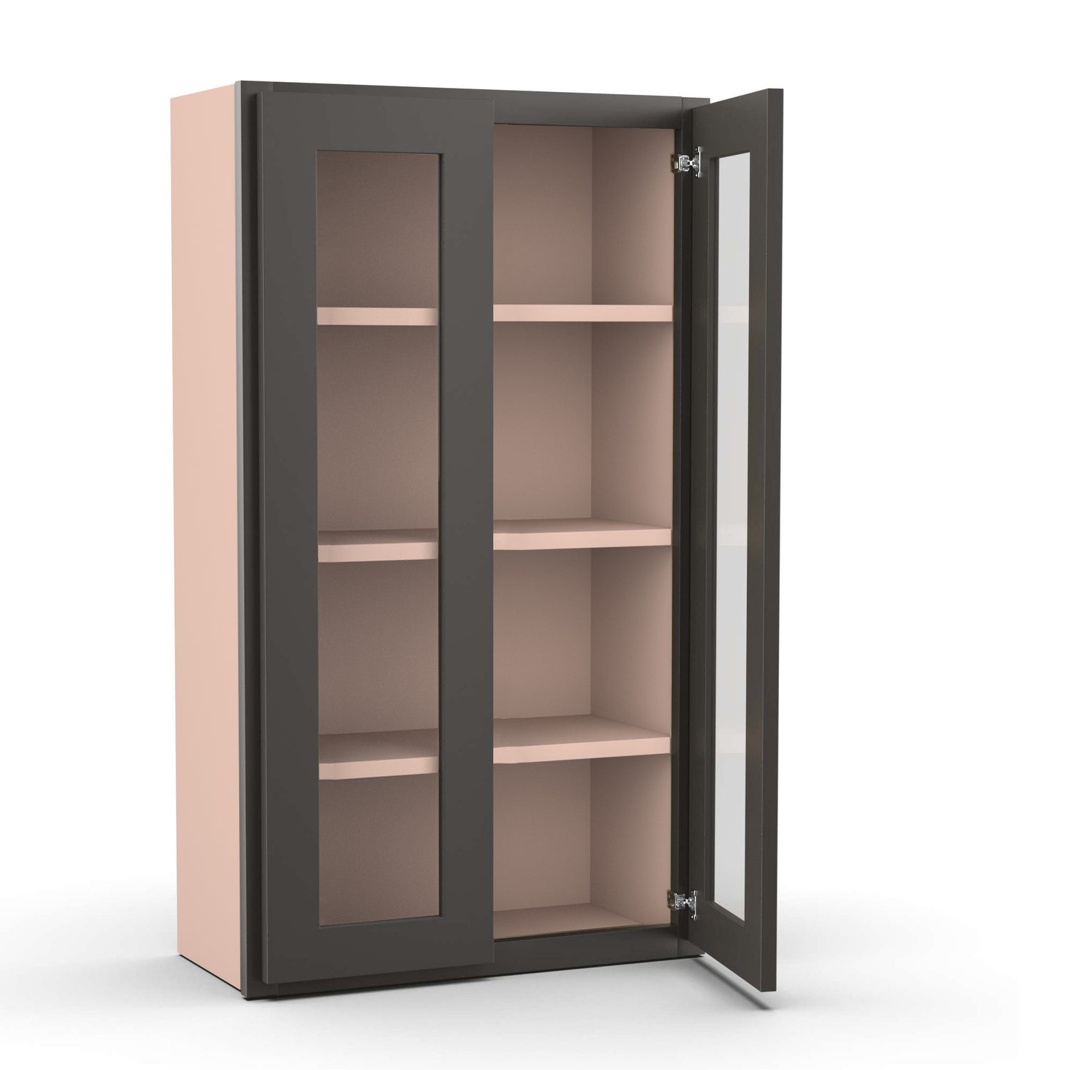 Liberty Shaker Grey - 24 Inch Double Glass Door Wall Cabinet - 24" Width x 42" Height x 12" Depth