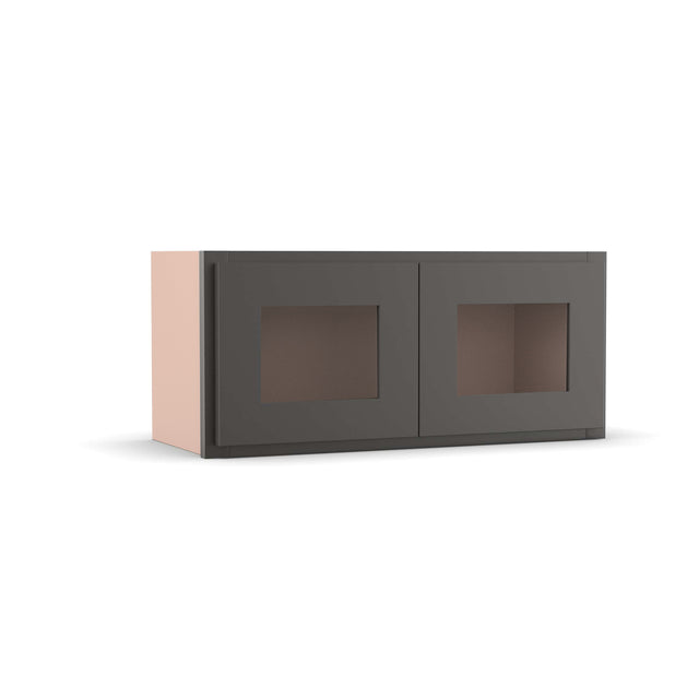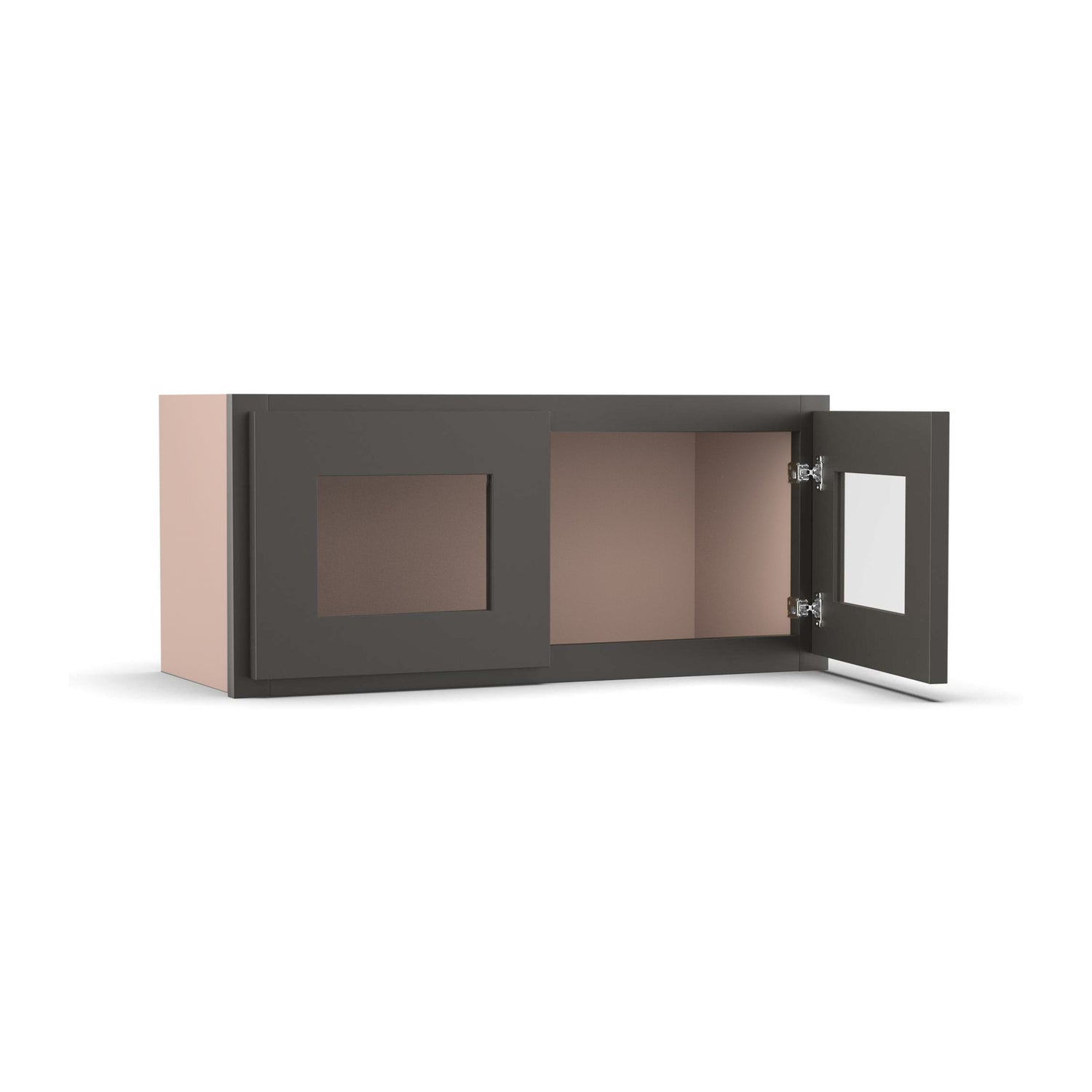 Liberty Shaker Grey - 27 Inch Double Glass Door Wall Cabinet - 27" Width x 12" Height x 12" Depth