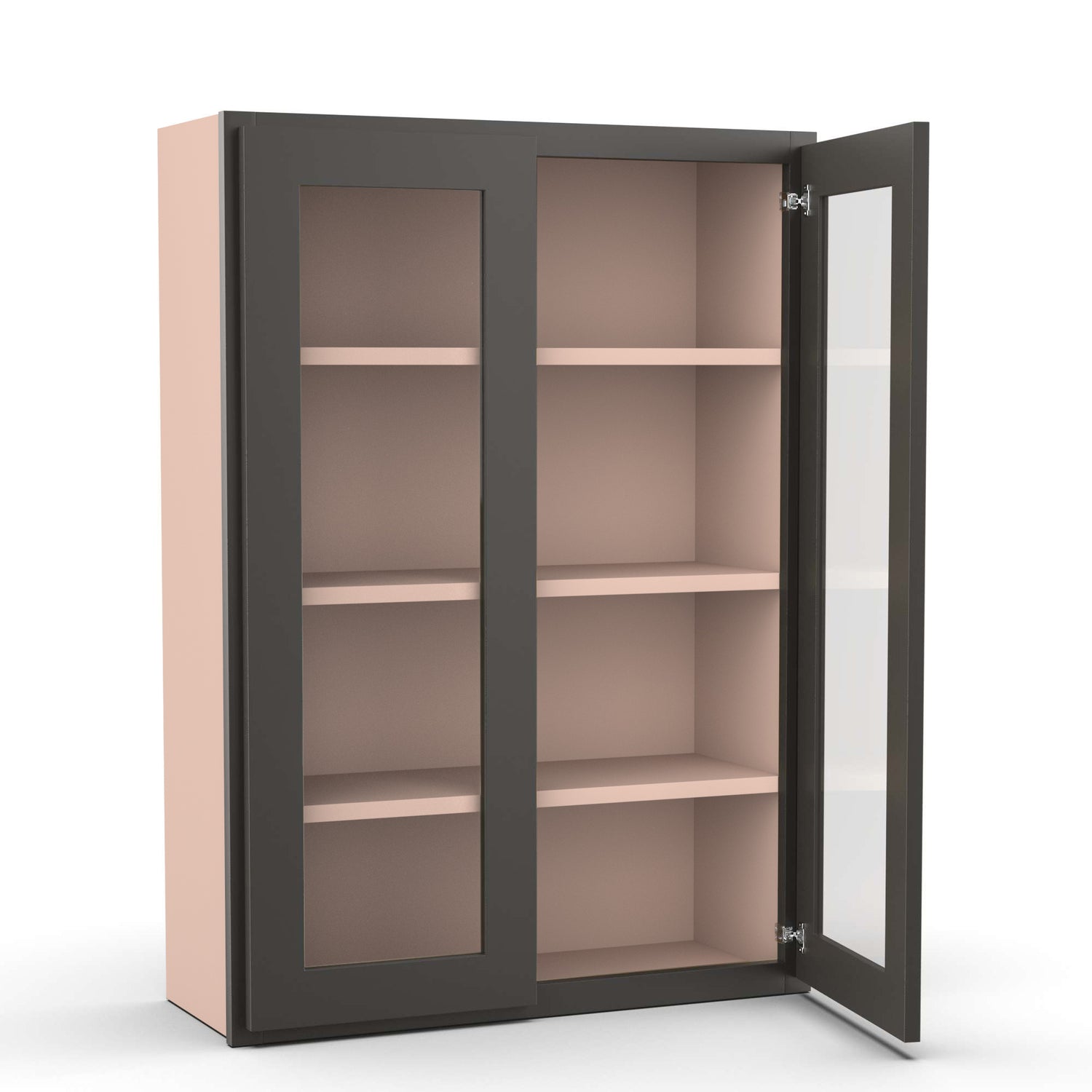 Liberty Shaker Grey - 30 Inch Double Glass Door Wall Cabinet - 30" Width x 42" Height x 12" Depth
