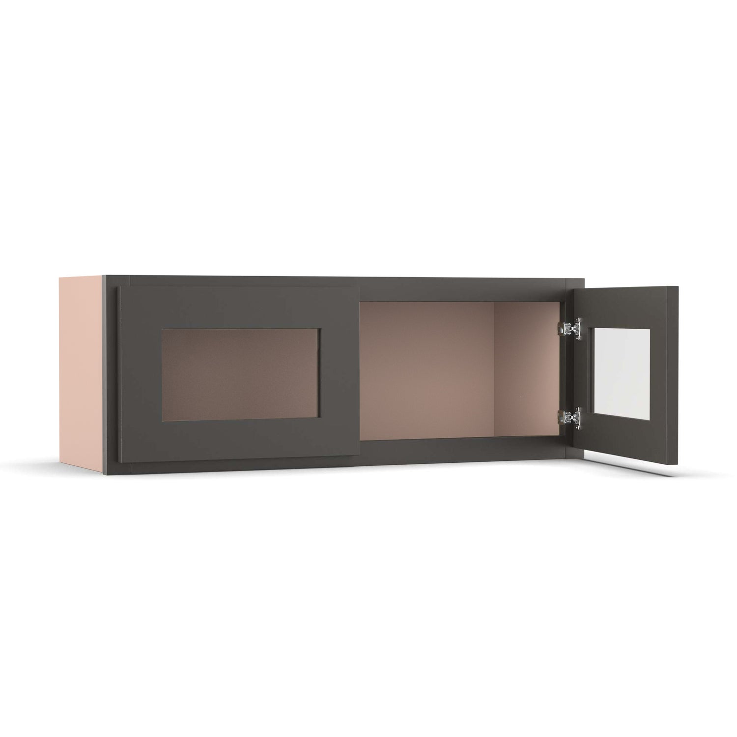 Liberty Shaker Grey - 33 Inch Double Glass Door Wall Cabinet - 33" Width x 12" Height x 12" Depth