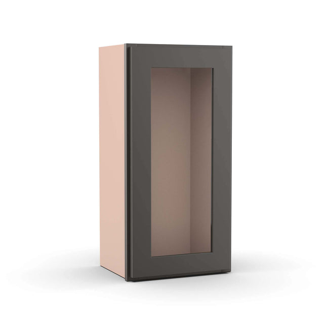 Liberty Shaker Grey - 15 Inch Single Glass Door Wall Cabinet - 15" Width x 30" Height x 12" Depth