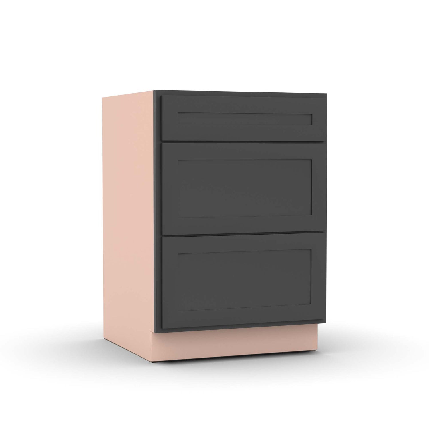 Liberty Shaker Grey - 24 Inch Three Drawer Base Cabinet - 24" Width x 34.5" Height x 24" Depth