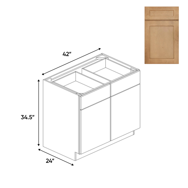 Liberty Shaker Karamel - 42 Inch Double Door Base Cabinet - 42" Width x 34.5" Height x 24" Depth