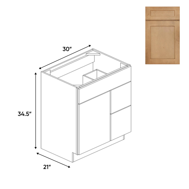 Liberty Shaker Karamel - 30 Inch Vanity Sink Drawer Base Cabinet - 30" Width x 34.5" Height x 21" Depth