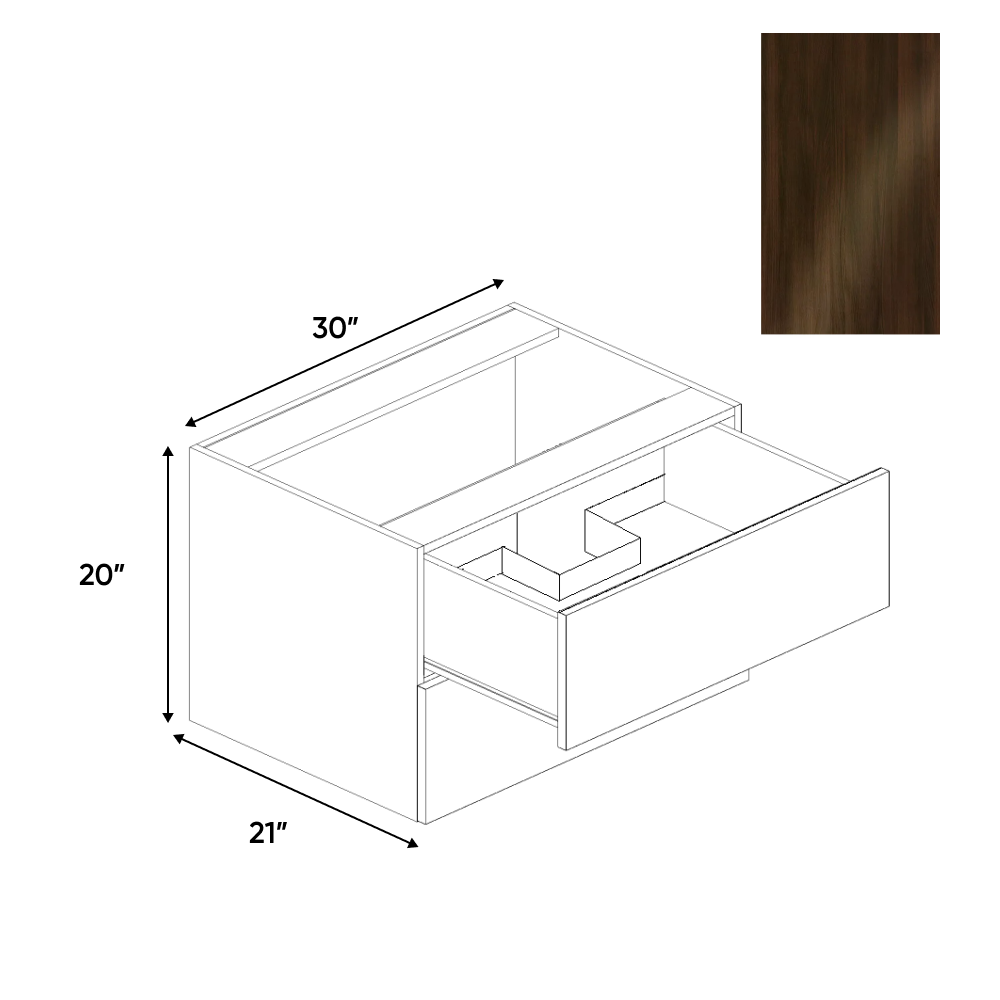 RTA - Olmo Gloss - Vanity Hanging Drawer Sink Base Cabinet - 30"W x 20"H x 21"D - Frameless Cabinet