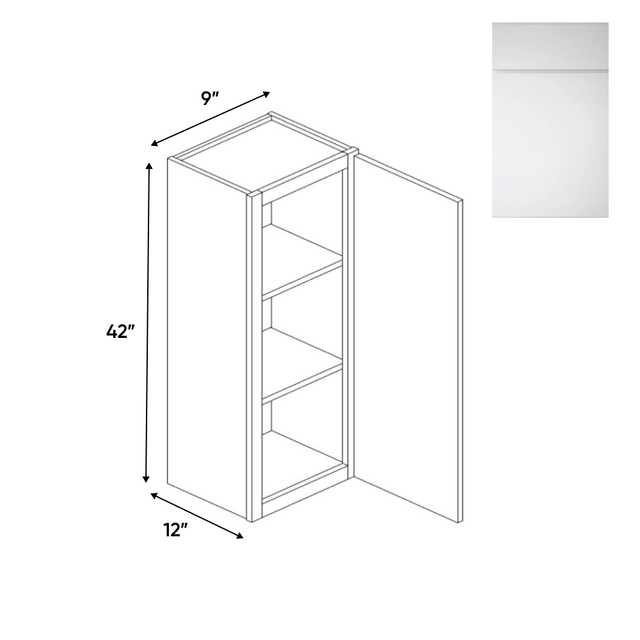 Sonoma White - 9 Inch Height Single Door Wall Cabinet - 09" Width x 42" Height x 12" Depth