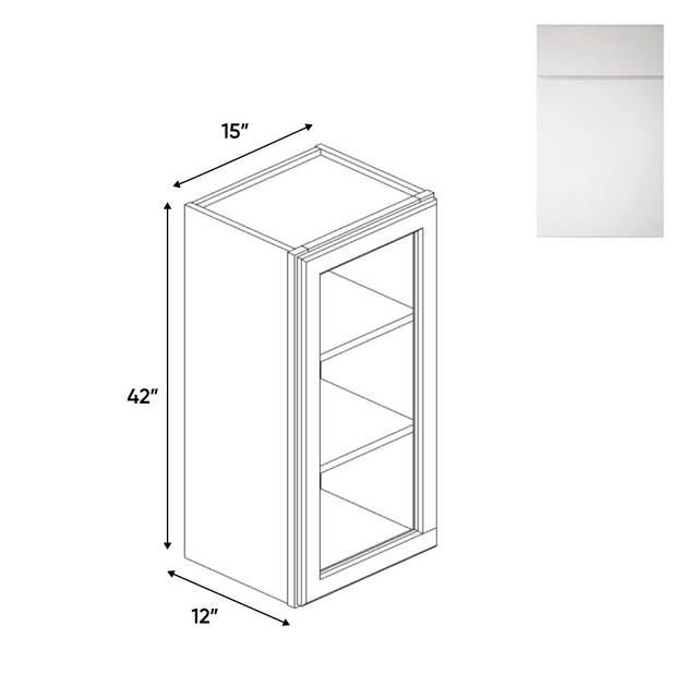 Sonoma White - 15 Inch Single Glass Door Wall Cabinet - 15" Width x 42" Height x 12" Depth