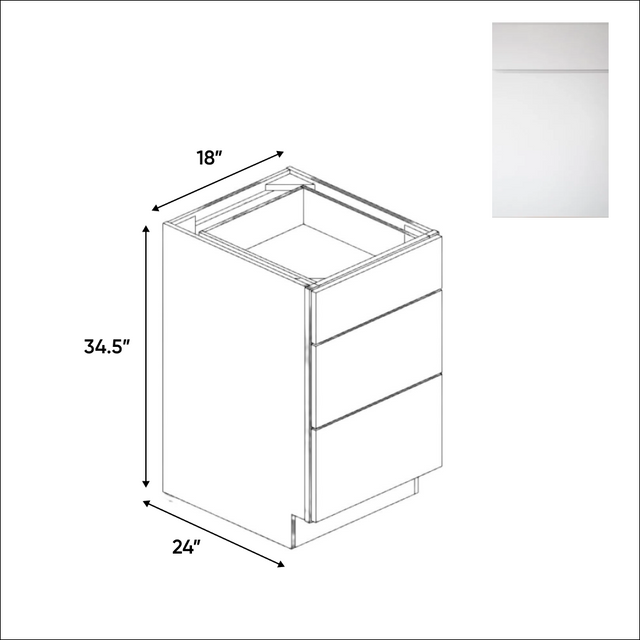 Sonoma White - 18 Inch Three Drawer Base Cabinet - 18" Width x 34.5" Height x 24" Depth